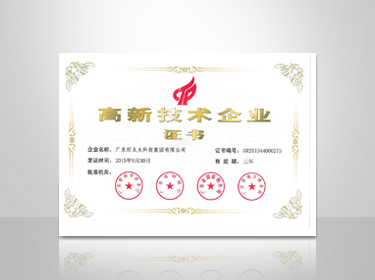 更連續3次獲得由廣東省科學技術廳、廣東省財政廳、廣東省國家稅務局、廣東省地方稅務局四單位授予的“高新技術企業”稱號。