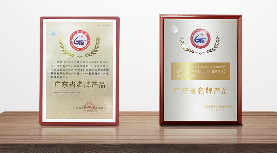 廣東好太太集團作為行業的領軍品牌,19年堅持用匠心智造好產品,堅守好品質,連續3年蟬獲“廣東省名牌產品”稱號,是社會各界對集團品牌產品的高度認可,也是集團品牌力量的實力見證。