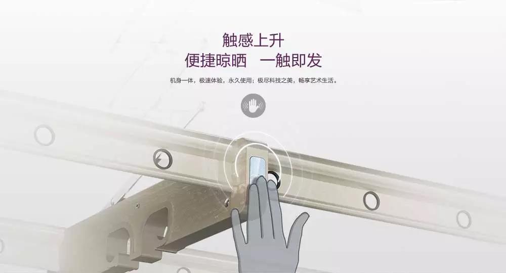 突破傳統(tǒng)的按鍵控制,手指輕輕一觸,即可實現(xiàn)上升功能,在行業(yè)首次應(yīng)用V-LED顯示,實時顯示晾曬狀態(tài),將智慧化的晾曬體驗發(fā)揮到極致。