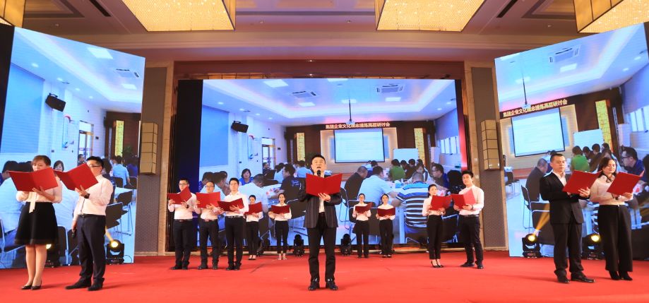 熱熱鬧鬧的鼓舞旗舞拉開了晚會(huì)的序幕,晚會(huì)共分為三個(gè)篇章,首先進(jìn)入“同心,攜手未來(lái)”企業(yè)文化發(fā)布會(huì)環(huán)節(jié),沈董、王總與總監(jiān)級(jí)及以上領(lǐng)導(dǎo)上臺(tái)揭曉文化日,9.20成為mk体育-MKsports官网人的專屬文化節(jié)日。